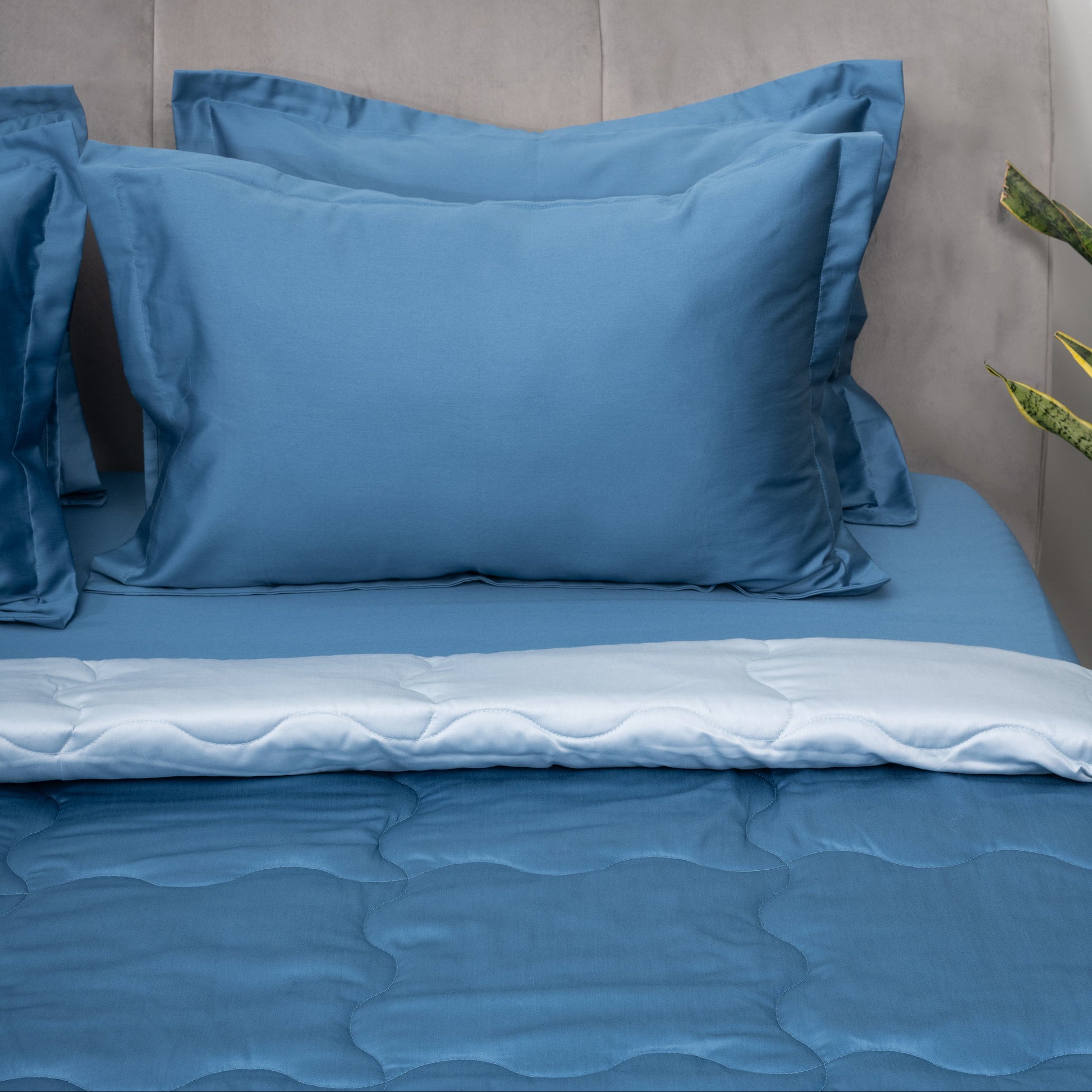 Made from premium 400 thread count cotton, our Blue Salt & Regal Whale Comforter is woven on modern air-jet looms using ultra-fine yarns that feel effortlessly soft and naturally lustrous. It gets even cosier with every wash, making it your perfect all-season companion—light, luxurious, and comfortable all year long.