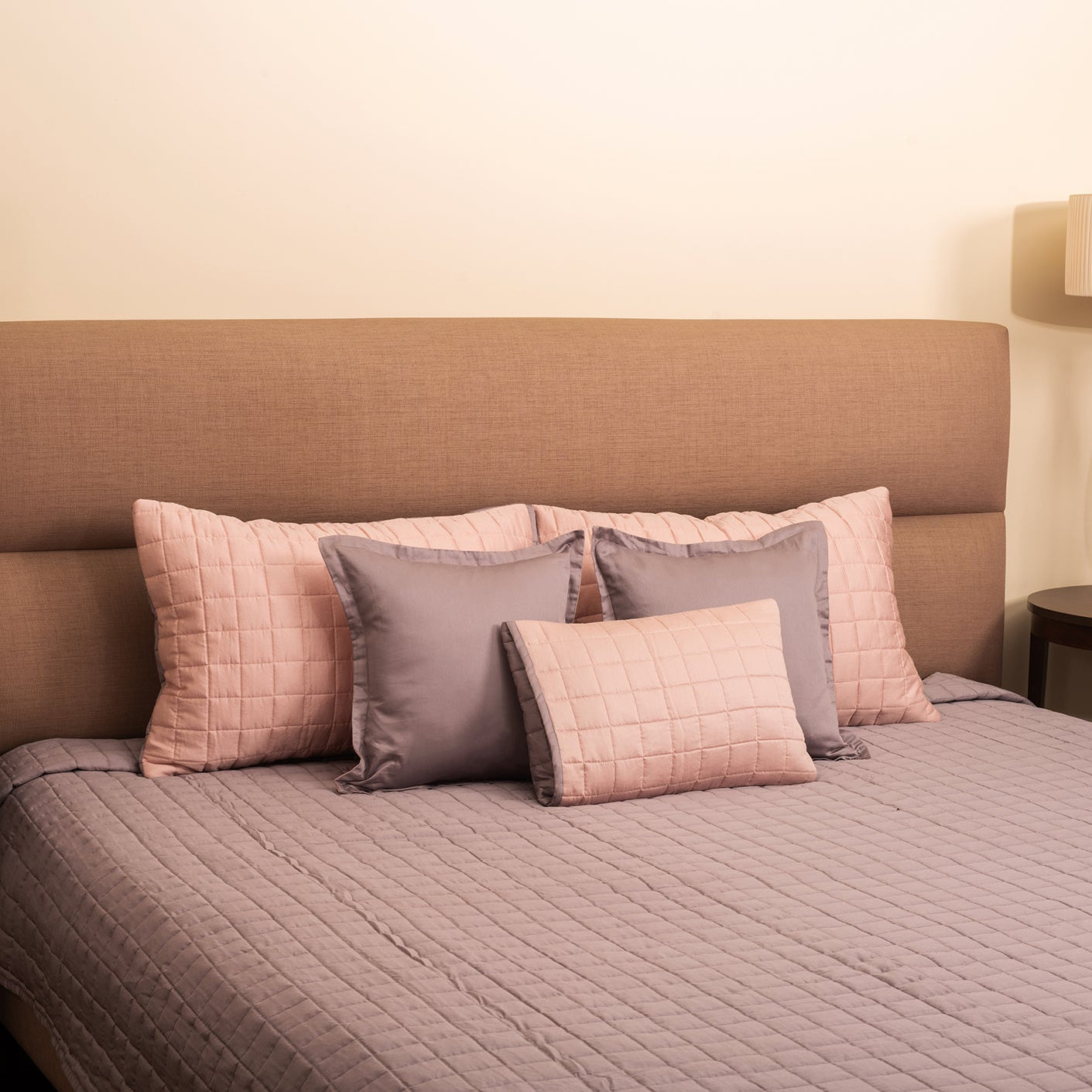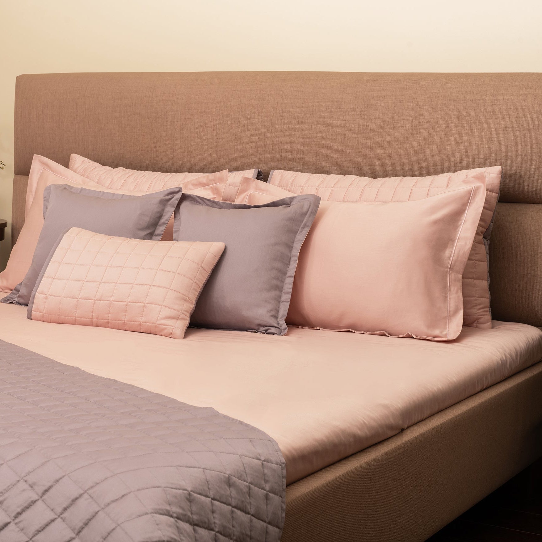 Wrap your bed in understated luxury with our 400 thread count Pink Quartz & Plum quilted Bedspread Set—crafted from ultra-fine cotton yarns that feel super soft and carry a gentle, silky shine. This 6-piece dual-color set comes in beautifully soothing pastel shades that instantly brighten any bedroom. Lightweight, elegant, and fully machine-washable, it blends everyday comfort with timeless style.